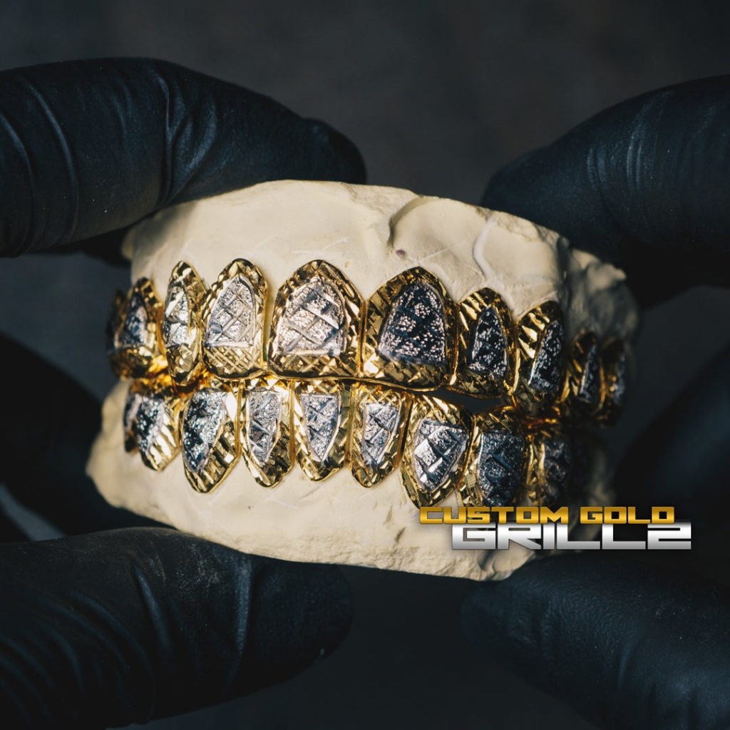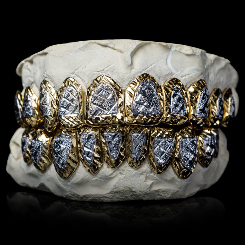 Solid Two Tone Gold Diamond Cut with Diamond Dust Grillz