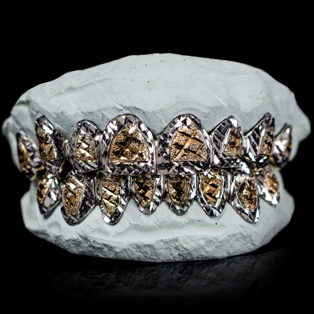 Solid Two Tone White Gold Diamond Cut with Diamond Dust Grillz
