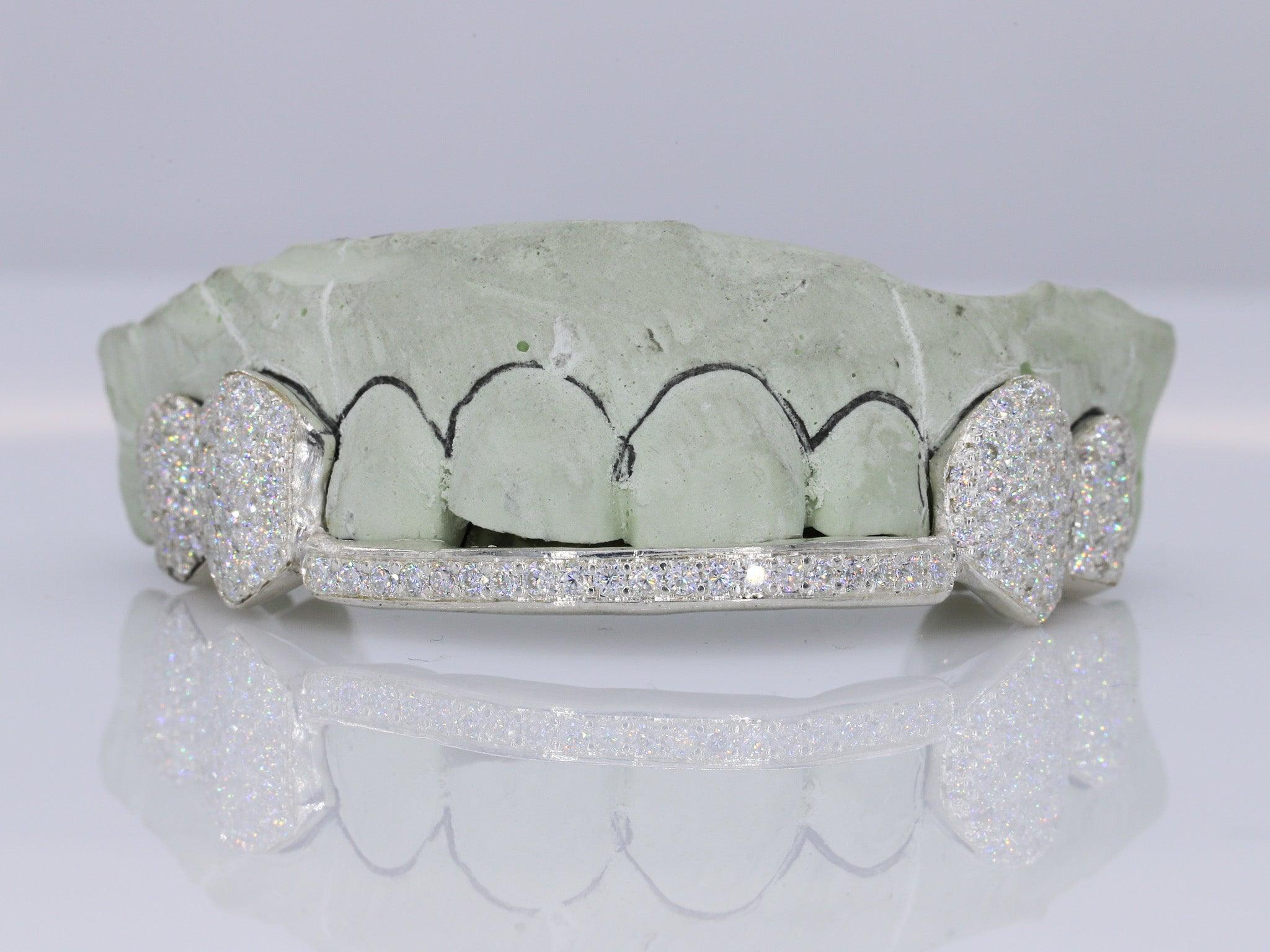 Custom Grillz Hand Set Moissanite Diamonds. These stunning pieces are a true work of art, featuring Moissanite diamonds of the finest quality and hand-set with the utmost attention to detail.