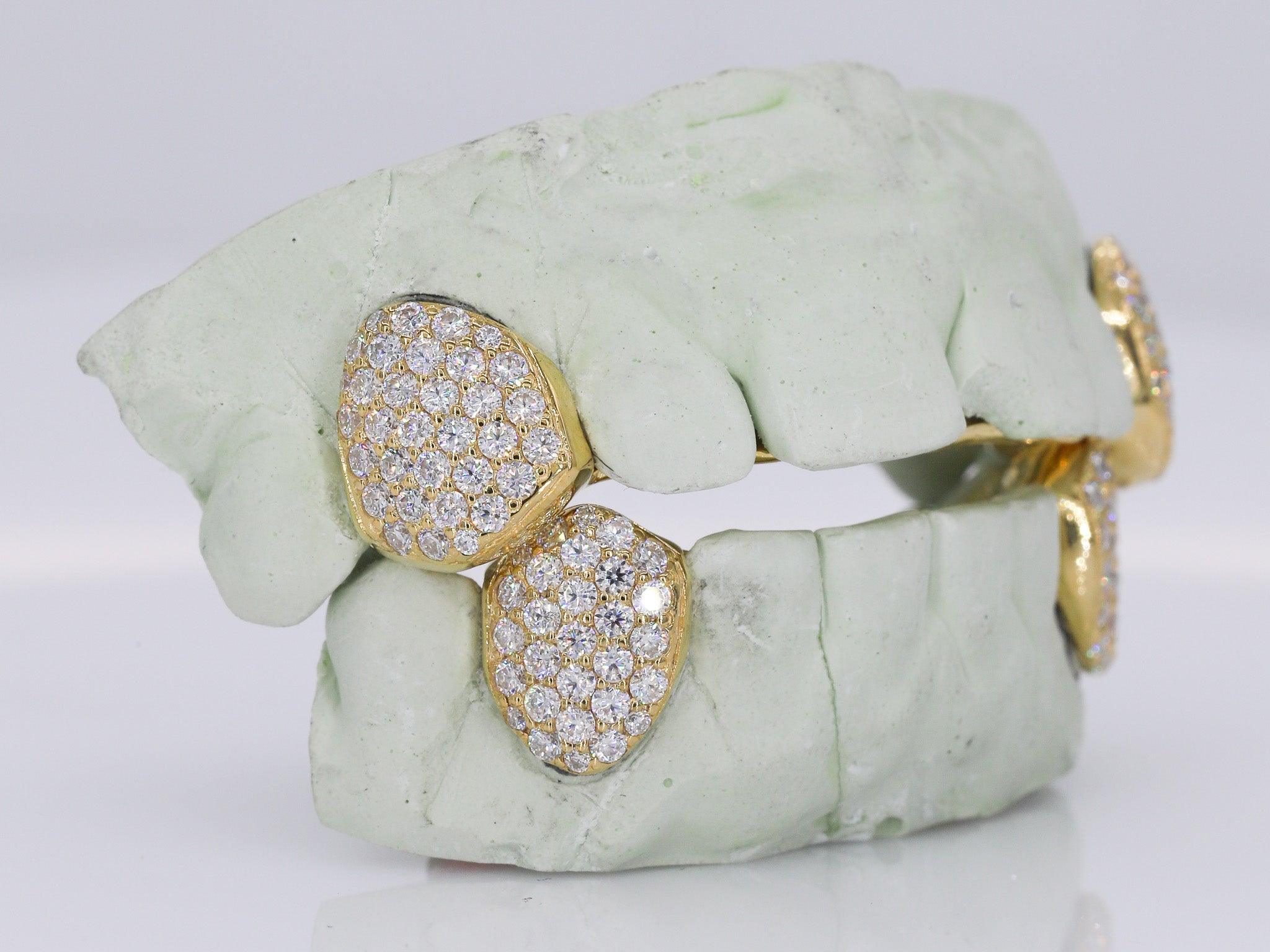 2 Iced Out VVS Moissanite Diamond Teeth Grillz