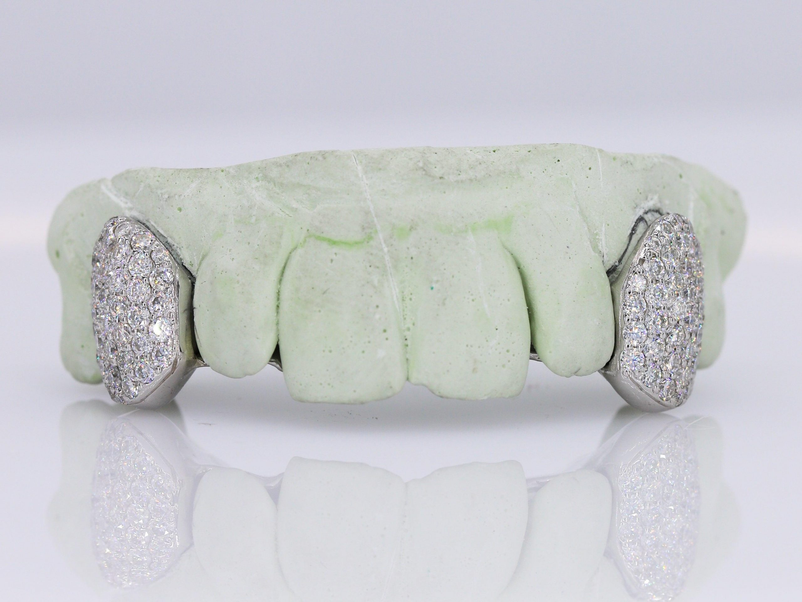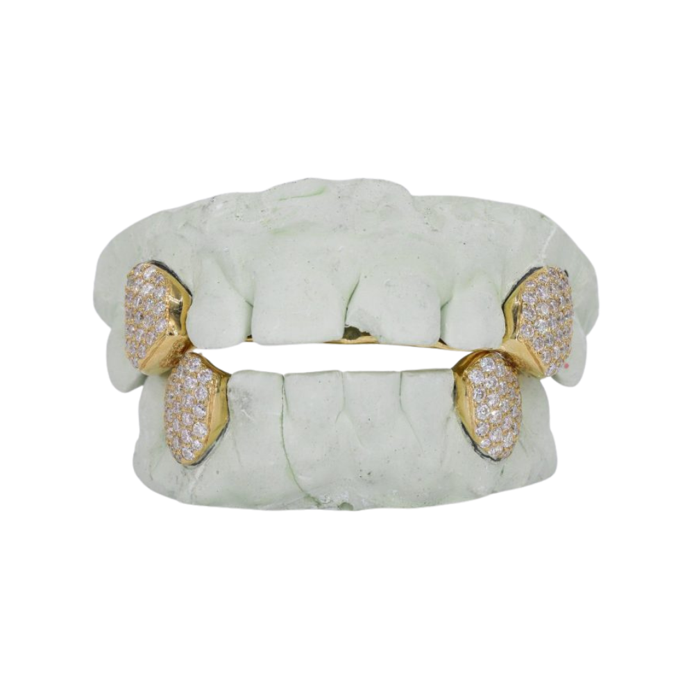 Custom Grillz Hand Set Moissanite Diamonds Top OR Bottom. These stunning pieces are a true work of art, featuring Moissanite diamonds of the finest quality and hand-set with the utmost attention to detail.