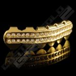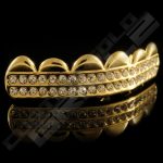 Our one of a kind 2 row iced gold grillz is definitely an eye-catcher! This piece would make you feel proud as you strut through the streets and go about your day.