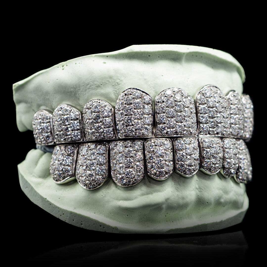 Keep it clean and icy with our Iced Straight Tips VVS Moissanite Grillz (Zigzag Setting). This design takes our classic honeycomb zigzag setting to the next level, featuring straight, aligned tips for a smooth, flush finish that levels up your smile game. Each tooth is iced out with VVS Moissanite stones, expertly set to deliver maximum shine and durability. Fully customizable, you can choose from Sterling Silver, 10k Gold, 14k Gold, or 18k Gold, giving you the perfect mix of luxury and modern style. If you’re all about a polished, next-level look, this grill is the one for you.