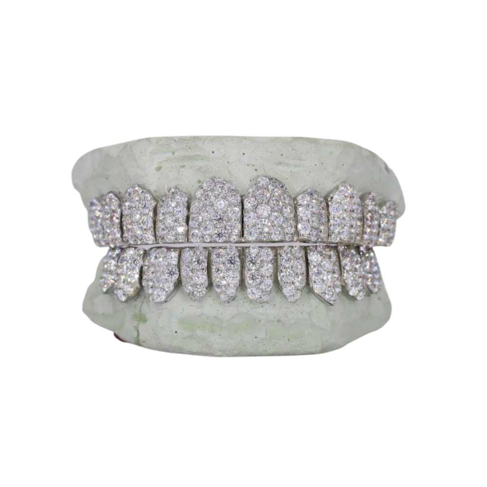Stones size varies from 2.2 – 2.5mm depending on customers teeth. Normal diamond grillz use 1.5mm stones.