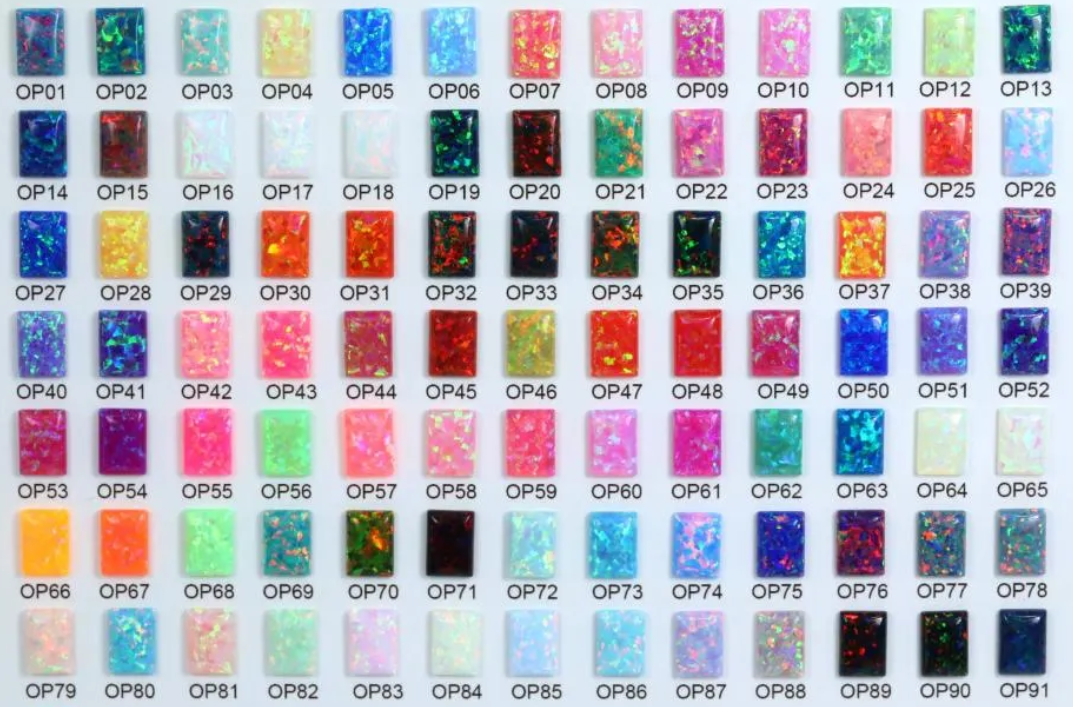 Use the opal color chart to specify which color you want under “Customizations”. The color of opal in the product photo is “OP46” (Golden Olive). Opal colors can vary based on the batch and where the stone was cut. The color chart is for reference only, and actual colors may differ slightly.