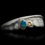 The double cap spans two teeth, serving a clean, symmetrical statement that’s comfortable and cool. Plus, the opal color is fully customizable—so you can align the vibe with your energy, your fit, or your mood. Whether you’re a true Libra or just drawn to its peaceful, magnetic aura, this grill brings balance and brilliance to your smile.