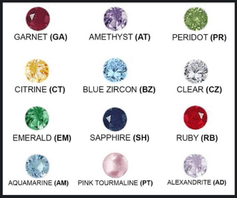 Use the “Stone Color Chart” to choose stone colors. Please note: If no color is indicated under “Stone Color/s” in the “Customizations” section, we will default to the color pattern shown in the product photo. For selected stone colors, they will be stacked in a randomized order across the gap fillers.