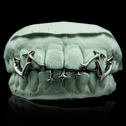 Our star grillz feature a unique style inspired by Blackpink’s Lisa and her iconic look in her “Rockstar” music video. This eye-catching design features a large star outline spanning three teeth and a sleek open-face grill with a small star accent, allowing you to customize your statement piece. Available in Sterling Silver, 10k Gold, 14k Gold, or 18k Gold, these grillz are tailored to fit perfectly on either the left or right side of your teeth. Crafted with precision and style, this design is perfect for anyone looking to elevate their look with a touch of star power. Make your mark with a celebrity-inspired accessory that shines as bright as you do!