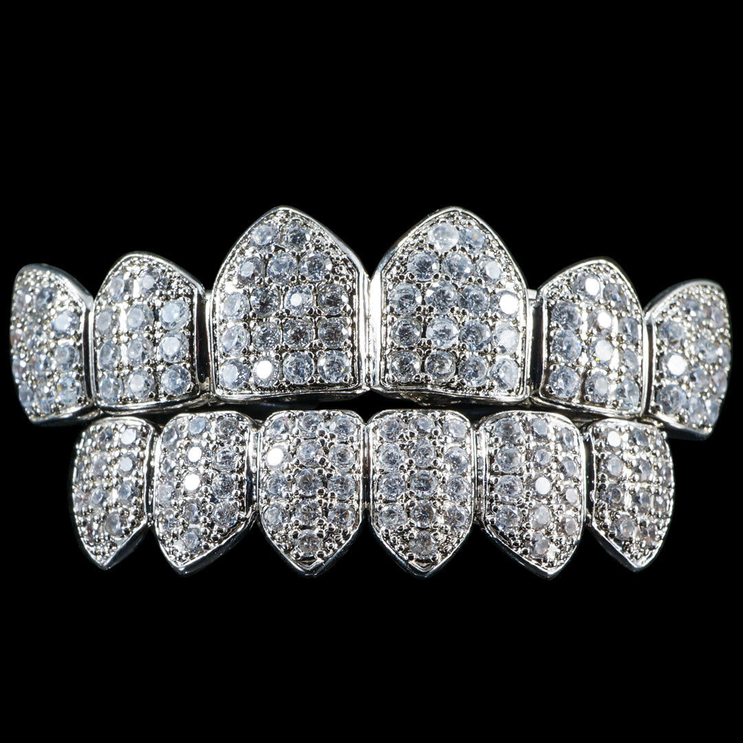 Don’t want to break your budget but want an icy grill? Our Pre-made white gold plated CZ grillz is the one for you! This set is an absolute steal. Make this a part of your signature look – wear it all day everyday!