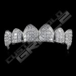 Shine like a star while wearing our premium white gold CZ grillz! Add in the fangs and you’re all set! Stand out, flaunt your smile and walk like you own the world with this iced out piece!